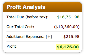 While creating an estimate or invoice, SalesBinder will present you with your true profit margins so you can play around with your pricing without any surprises.