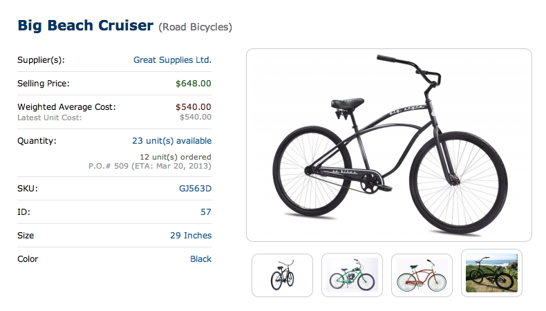 Quickly see everything you need to know about your specific inventory items. Who supplies it, what it's currently selling at, how many you have in stock, how many you have back-ordered in purchase orders and when they're supposed to arrive.