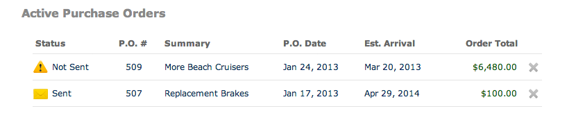 Update your purchase orders with the latest information so everyone knows when P.O's have been sent, when the items are due to arrive, or when they did arrive.