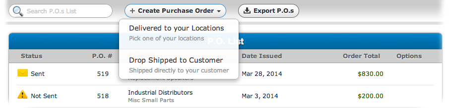 Quickly review your entire list of P.O's and see what their statuses are. Instantly search by P.O Number or Supplier.